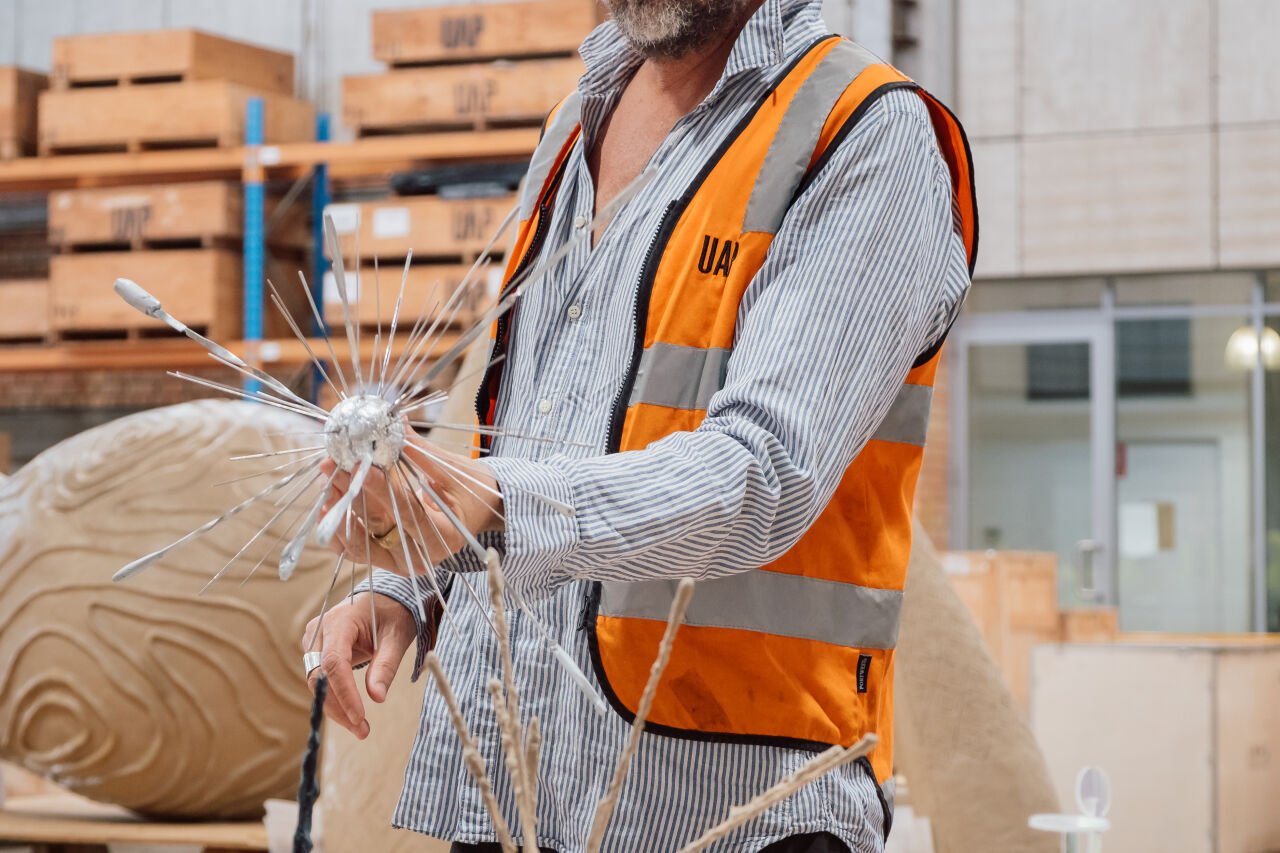 Tim Georgeson’s artistic practice is shaped by his experience as a filmmaker and photojournalist in humanitarian and environmental crisis zones, leading to collaborations with First Nations artists in Australia. His recent residency at our Brisbane foundry enabled him to explore new sculptural forms for his upcoming project, 'Astrogaze.' The hands-on collaboration expanded his creative approach and inspired new exhibition ideas, invigorating his artistry at the Olsen Gallery.