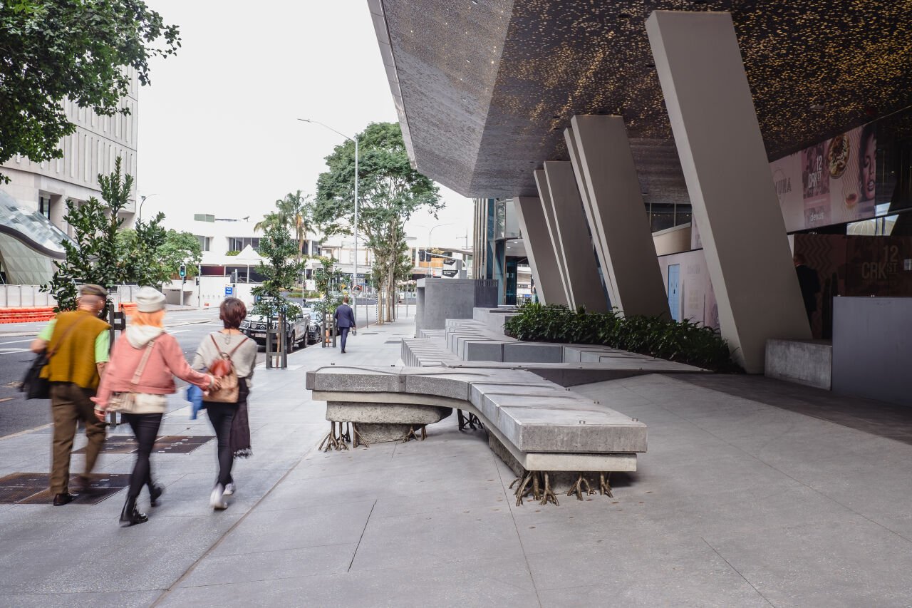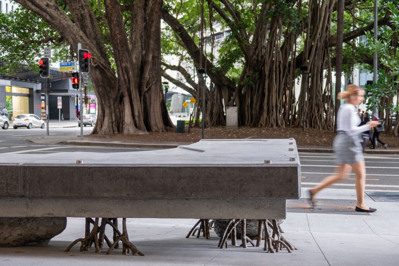 A subtle yet powerful example of this integration can be found in Robert Andrew’s Grounded in the Present, which was developed in collaboration with Dexus and BVN for the commercial tower at 12 Creek Street, Brisbane.