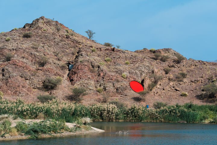 Shaikha Almazrou’s Deliberate Pauses is a defining gesture in the evolving field of public art in the Gulf. Installed across the terrain of Hatta and Leem Lake, the work does not occupy the site, it converses with it. Five red reflective sculptures are dispersed across the mountains and hiking paths, entering into dialogue with the wind, the light, and the bodies that traverse them.