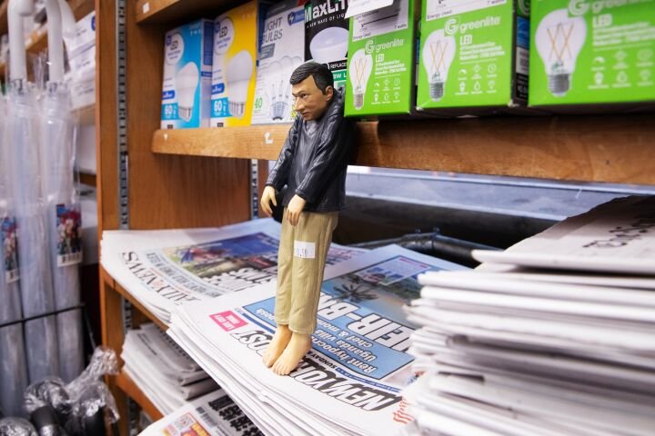 Three hand-painted miniature self-portrait sculptures by Cattelan were discreetly placed for sale in everyday retail settings: a New York bodega for $0.50, a London fruit stall for £0.99, and an Amsterdam antique shop for €5.00. This radical repositioning stood in stark contrast to the editioned works’ gallery price of €1,500, humourously subverting notions of value, access, and authorship in the art market. Digital clues to each sculpture’s whereabouts invited global participation: the New York piece could be purchased in person, while the London and Amsterdam works were sold via an online entry form stating the correct location. The first find - resting on a newspaper in a Soho corner store - occurred within two hours of a nondescript image being shared online.