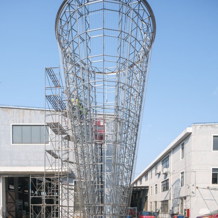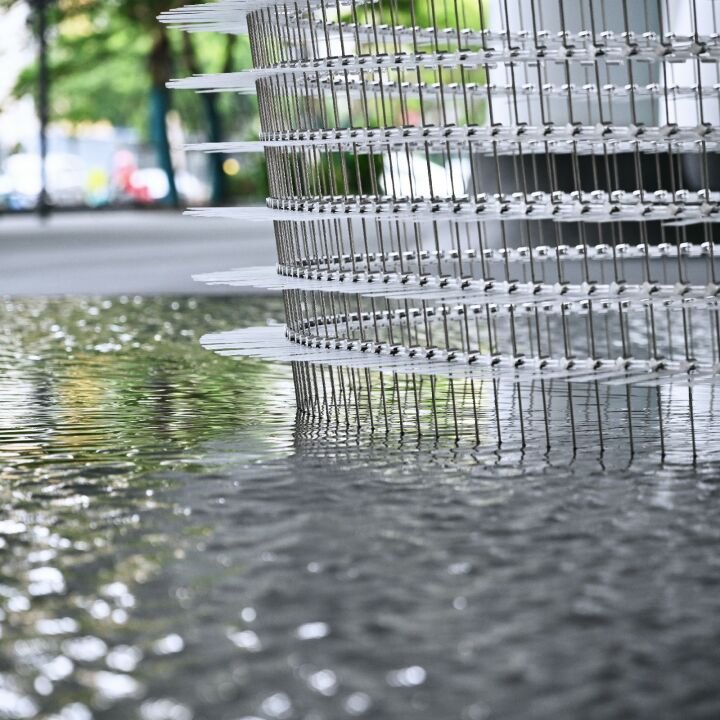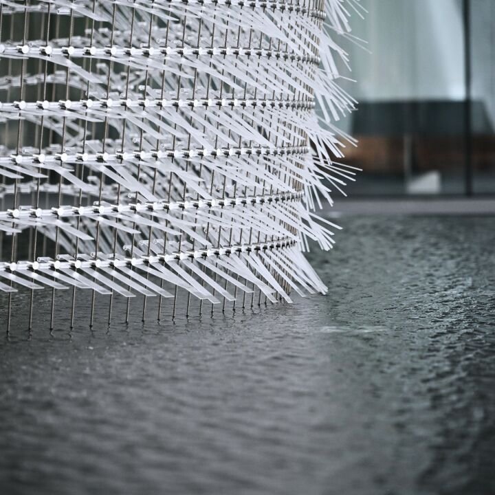 Commissioned by Sany and Irootech in collaboration with SOM Architects and delivered by our Shanghai team, the work reflects a shared commitment to smart technology, global connectivity, and a low-carbon future. The artwork at times can be calm with still water, but when the wind blows, it animates the work into motion, revealing coordinated patterns that resonate with the logic of digital intelligence. Made from Durabio, a plant-based bioplastic that stores carbon from the atmosphere, the sculpture becomes both symbol and system: alive, reactive, and restorative.