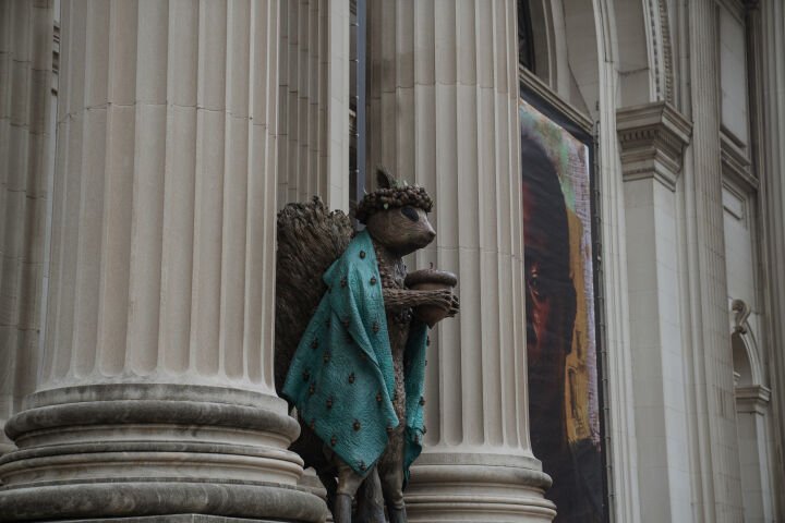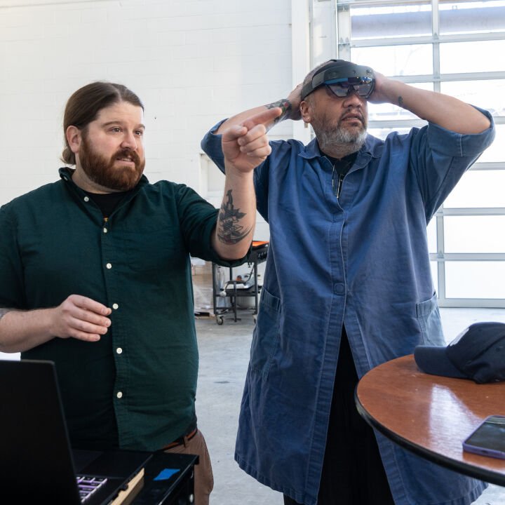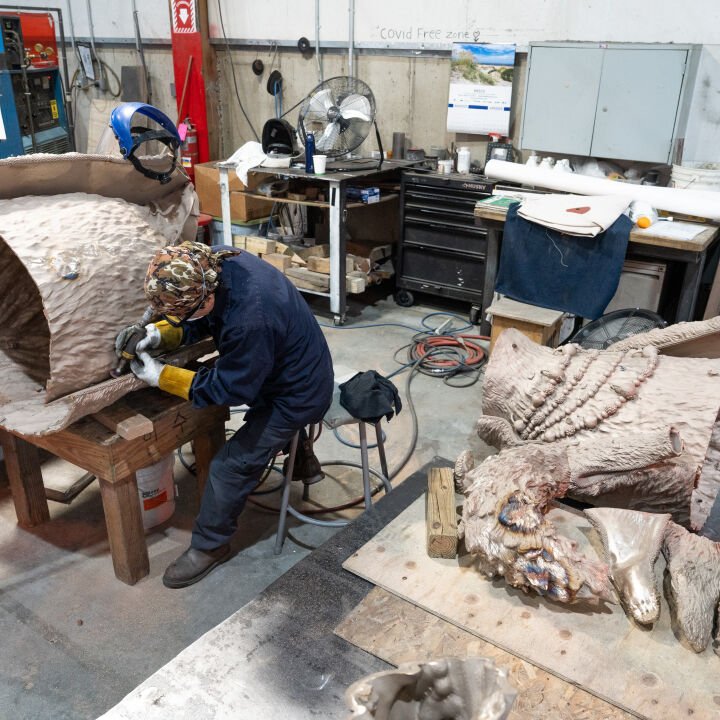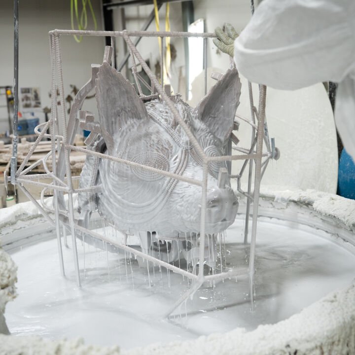 Our Rock Tavern team made two trips to Gibson’s studio in Hudson, NY, to digitally scan the original maquettes of the deer, hawk, squirrel, and coyote. Our digital team processed the data and created three-dimensional files to prepare for digital sculpting. They collaborated directly with Gibson to adjust the designs, adding texture and beads to enhance the sculptures using augmented reality (AR) headsets. During the fabrication process, the Rock Tavern team first created PMMA prints of the deer, hawk, squirrel, and coyote. They were then shelled and cast in silicon bronze. The metal was removed from the shells and sent to the welding department. Gibson personally supervised the application of the patina to ensure that each sculpture aligned with his artistic vision, giving the sculptures a unique and weathered appearance.