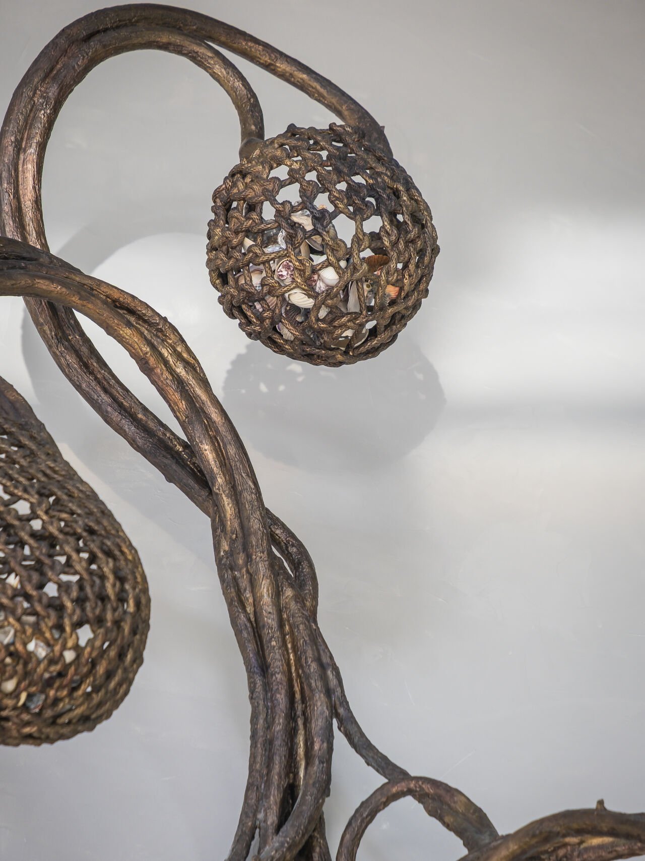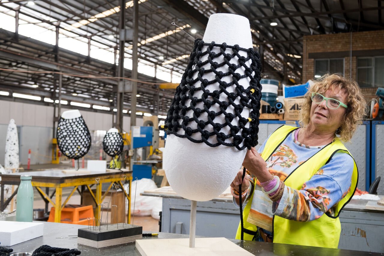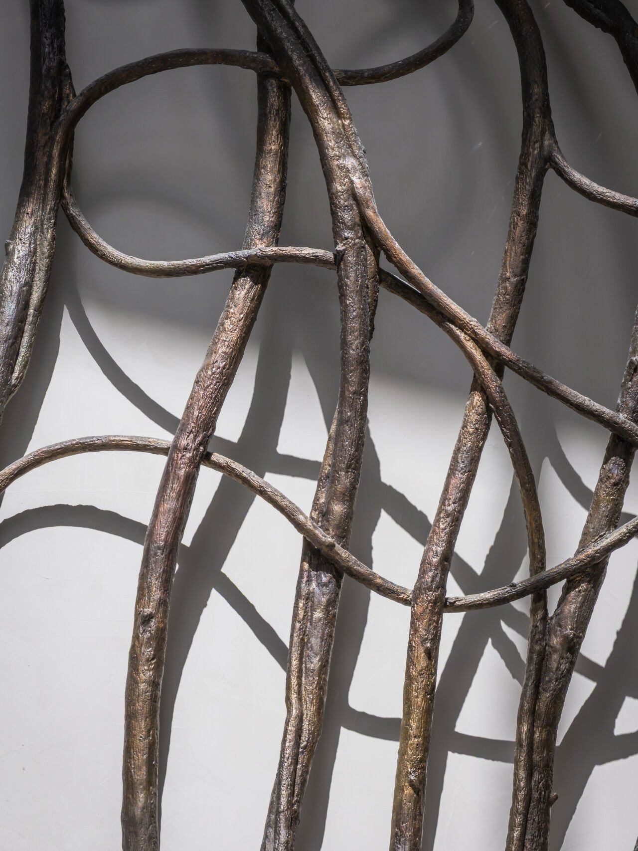 To realise the sculpture’s varied surface texture, samples of Talwalpin vine were brought into UAP’s Northgate foundry. There, the artist collaborated with experienced patternmakers to replicate the plant’s natural indentations using layered plasticine set over milled foam formwork. Carmichael also undertook weaving studies using rope, chosen for its legible detail at scale, to demonstrate the intended open structure of the sculpture’s woven form. Direct moulds were then taken for casting.