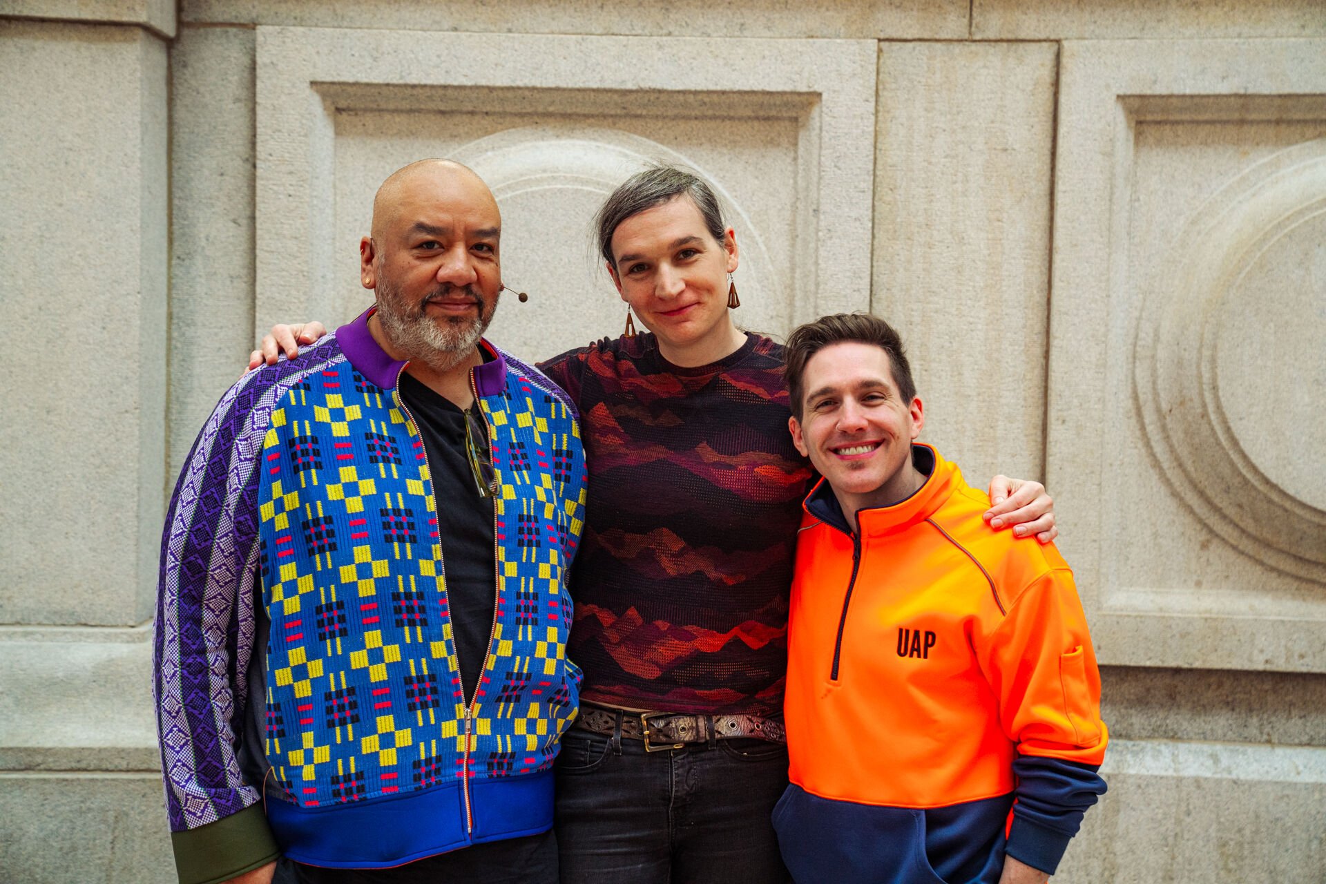 Jeffrey Gibson delved into his artistic techniques and practices during his conversation, offering insight into the creative process behind the four sculptures displayed on The Met's facade. He highlighted the significance of his artist residency at Rock Tavern, describing it as a transformative experience that influenced his development and laid some of the foundation for these pieces we see on display today.