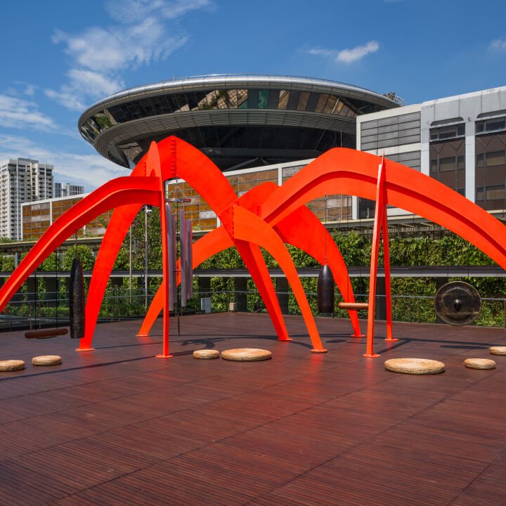 Temple (2025) by Tuan Andrew Nguyen is a new sculpture commissioned for the Ng Teng Fong Roof Garden of the National Gallery Singapore, co-presented with the Singapore Art Museum at the launch of the 8th Singapore Biennale: pure intention.