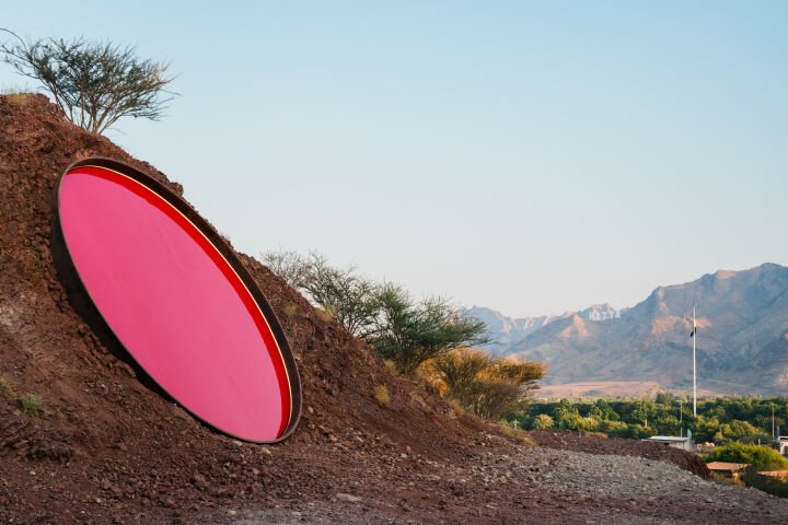 Shaikha Almazrou’s Deliberate Pauses is a defining gesture in the evolving field of public art in the Gulf. Installed across the terrain of Hatta and Leem Lake, the work does not occupy the site, it converses with it. Five red reflective sculptures are dispersed across the mountains and hiking paths, entering into dialogue with the wind, the light, and the bodies that traverse them.