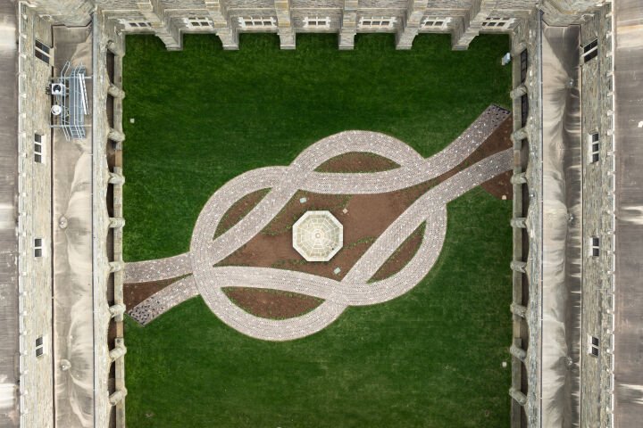 Commissioned by Bryn Mawr College in partnership with Monument Lab, Nekisha Durrett’s Don't Forget to Remember (Me) is a winding brick pathway outside the Cloisters of Bryn Mawr’s Old Library. Woven together, the bricks form braids or plaited hairstyles. This symbol, alongside those bricks made of glass and designed to be lit up at night, invokes Cook’s body and her daily walk on campus, and insists on the remembrance of the many who labored and dedicated their lives to a college that neither they nor most of their children could attend. Subtle and yet sophisticated, Don't Forget to Remember (Me) engages the complex histories of racial discrimination, diversity, and desegregation in higher education by inviting all who walk on this path to never forget.