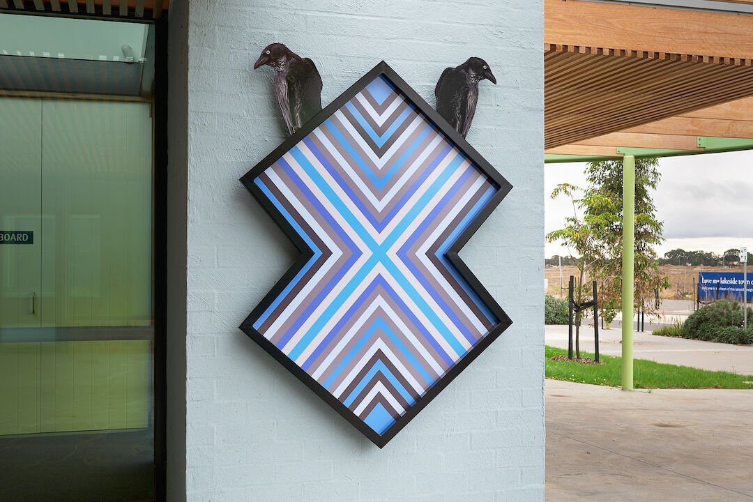 We are happy to have helped bring another one of Kent Morris’s work to life, this time for the Lollypop Creek Community Centre. Protecting Country recognises and honours the enduring cultures of the Wadawurrung people and all First Nations communities from ancient times to the present. This work blends elements from shield motifs, architectural features, Waa the crow, and the natural hues of the landscape, symbolising the union of history and contemporary life. It positions Country as a vital source of wisdom and cultural exchange, highlighting its significance in our shared herita