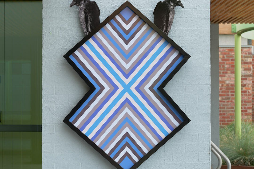 The intricate geometric designs draw inspiration from the way light and wind create reflections of the sky on water, as well as markings found on cultural artefacts from Wadawurrung Country and southeastern Australia. These patterns depict interconnected pathways that reinforce our ties to family, culture, and community, portraying the journeys of individuals and groups as part of a larger, continuous story. Waa, the crow and ancestral spirit, oversees and is entrusted with the guardianship of our waterways, while the chosen colour palette pays tribute to the deep significance of water and Sky Country for the Wadawurrung and other First Nations peoples. This relationship symbolises the enduring connection across generations, facilitating the transmission of knowledge and culture.